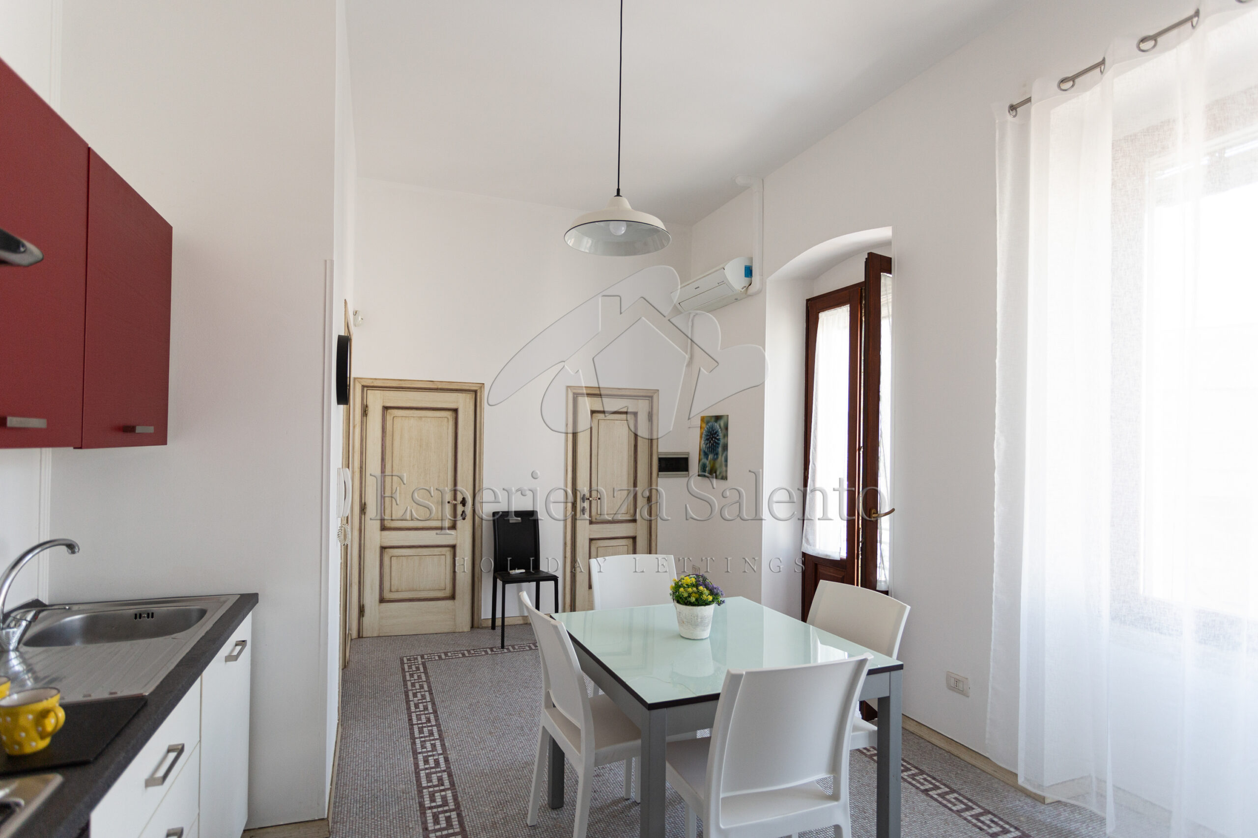 Appartamento in Corte è un appartamento a primo piano all’interno di un’antica corte nel centro storico di Taviano, vicino Gallipoli. Composto da una camera matrimoniale con volte a stella, una cameretta con letto a castello, un bagno con doccia e sala pranzo con angolo cottura, è l’ideale per le famiglie che decidono di vivere una vacanza in un posto tranquillo ma centrale per raggiungere le più rinomate località turistiche della zona. Inoltre la sera in pochi passi a piedi si raggiungono ristoranti, pizzerie e bar di cui il centro storico pullula.