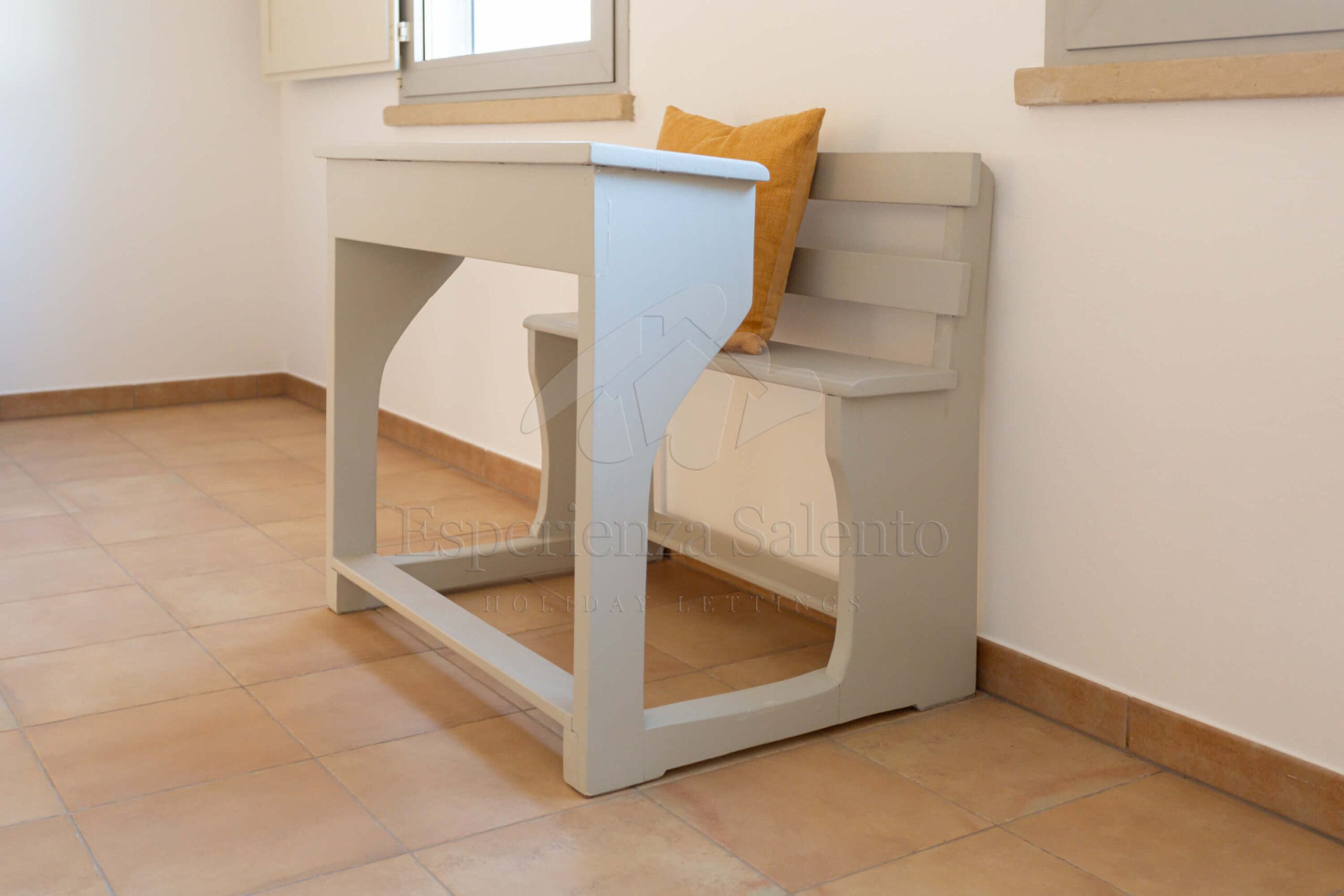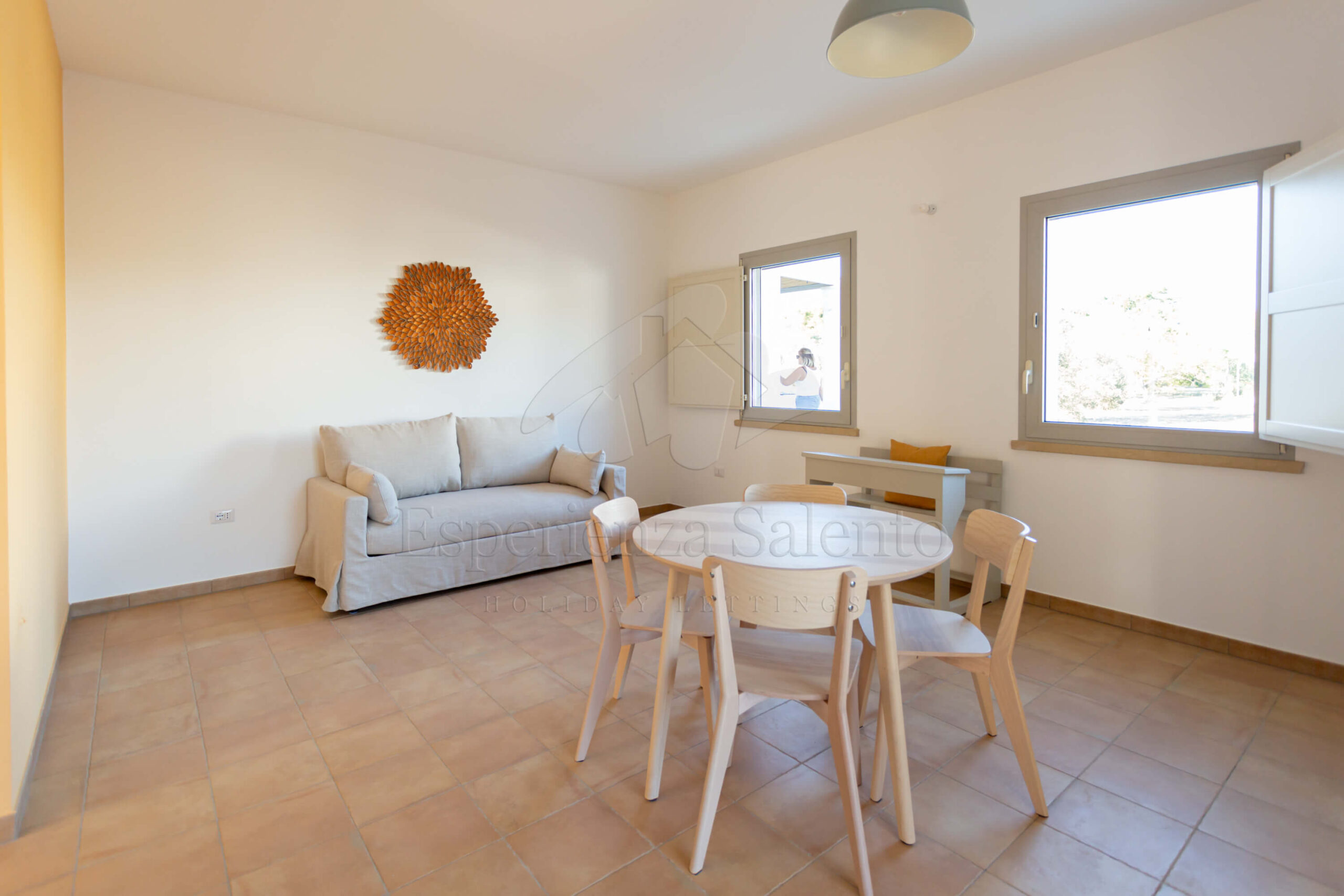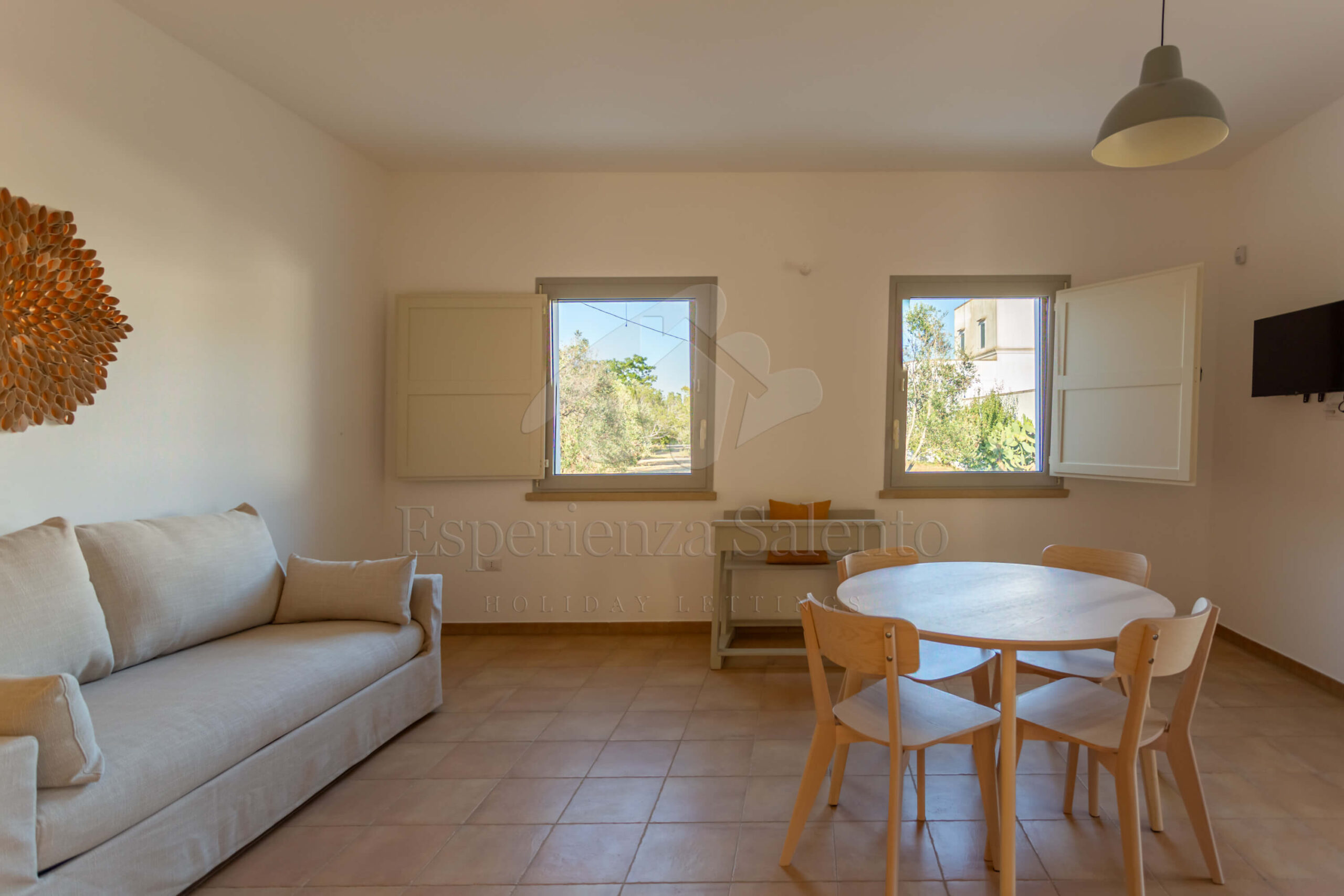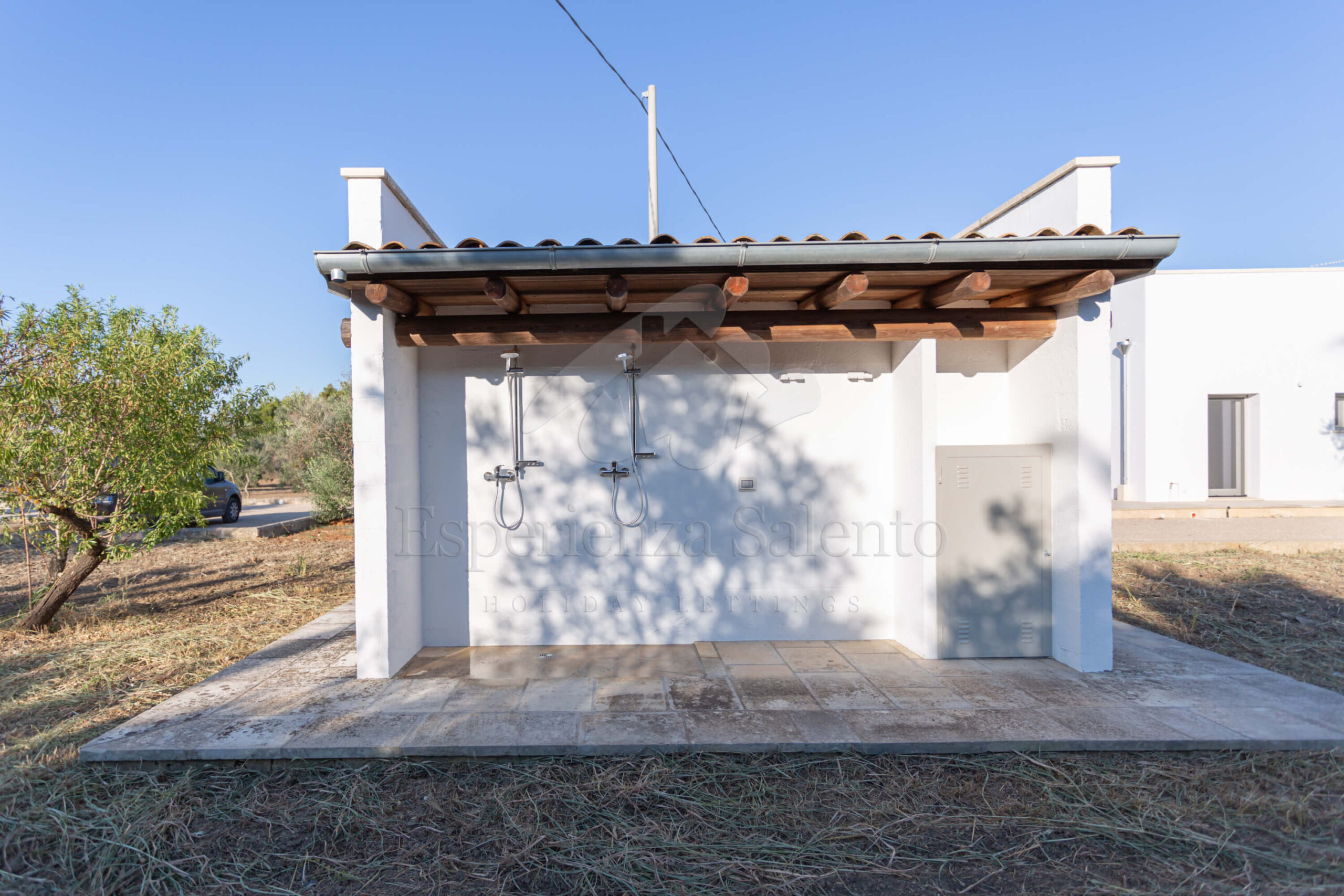 Questi appartamenti immersi nel verde della campagna salentina, lontani dal traffico e dai rumori cittadini, garantiscono una vacanza all’insegna del vero relax. Oltre al comfort offerto da ogni alloggio, grazie alla cura minuziosa e di buon gusto dei proprietari, affiancata dal concetto cardine della praticità, vi è una zona esterna e condivisa dove troverete le docce esterne e la zona lavanderia, con lavatrice, ferro e asse da stiro, cassetta pronto soccorso ed estintore.