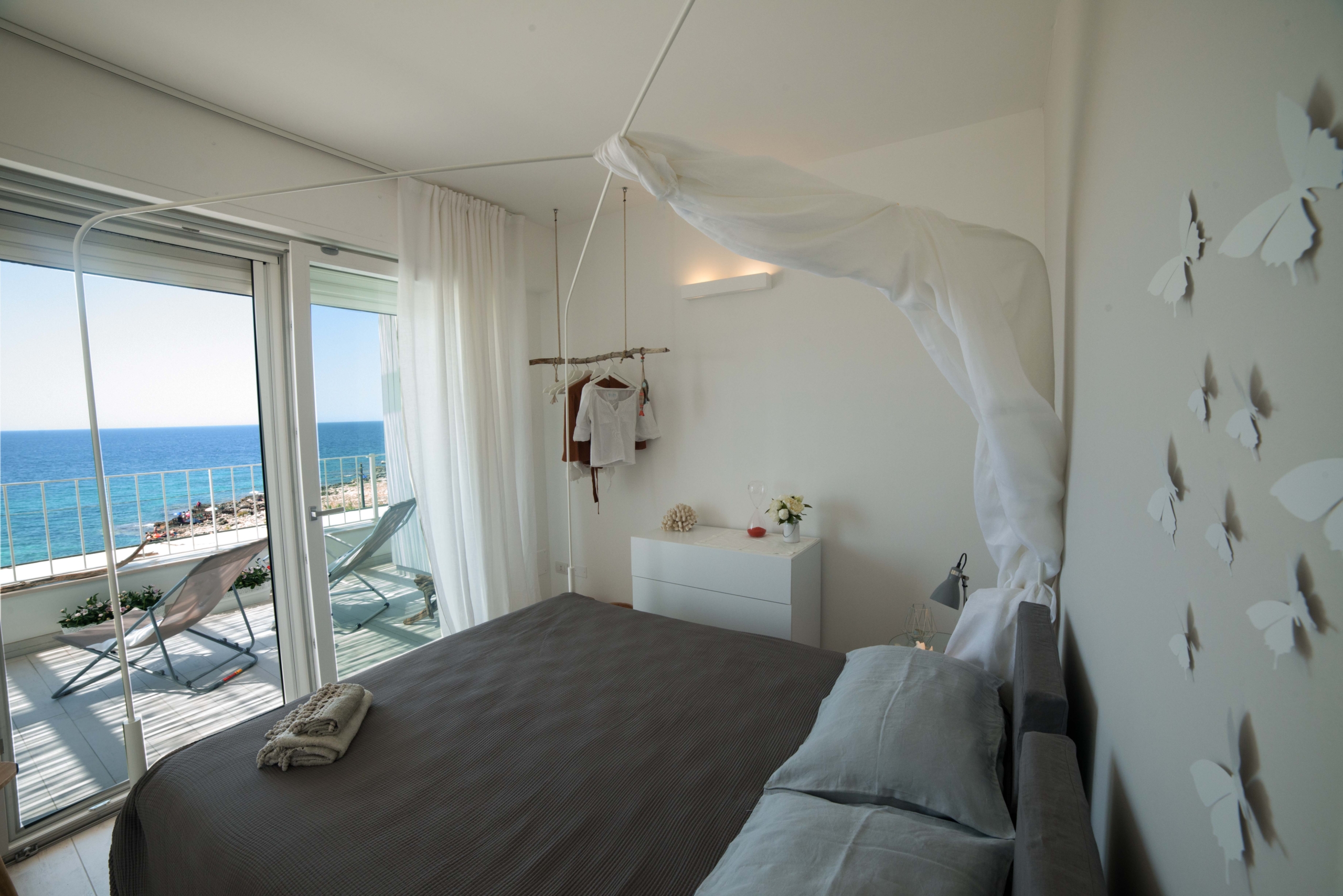 camera matrimoniale con ampia vetrata fronte mare
