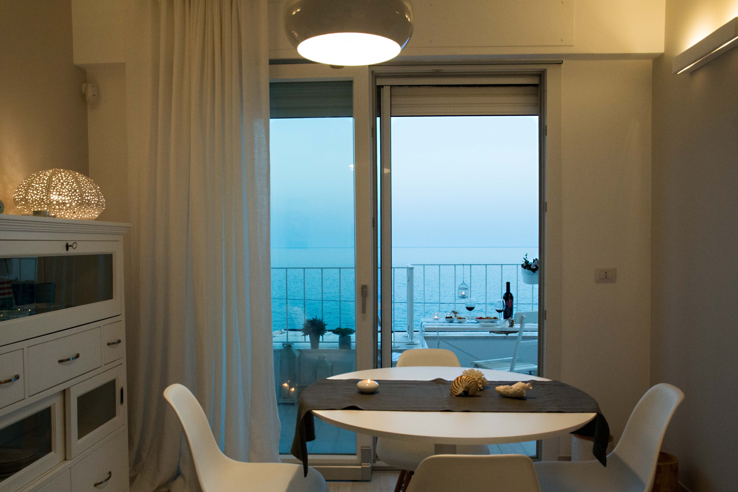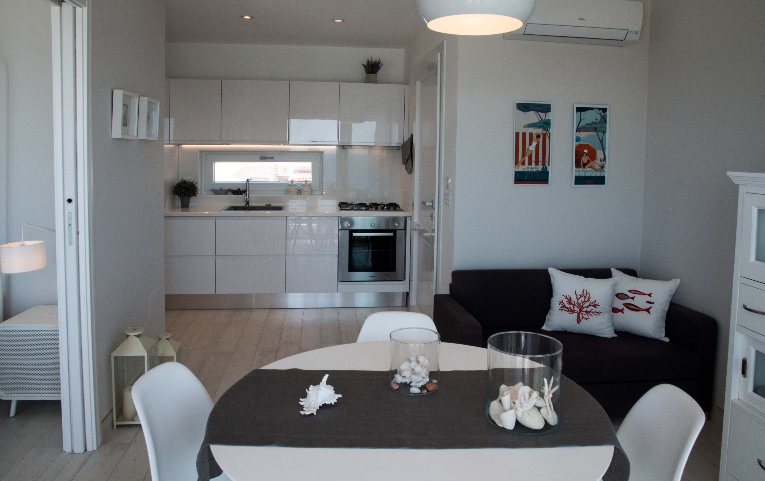 soggiorno con angolo cottura affacciato sul mare